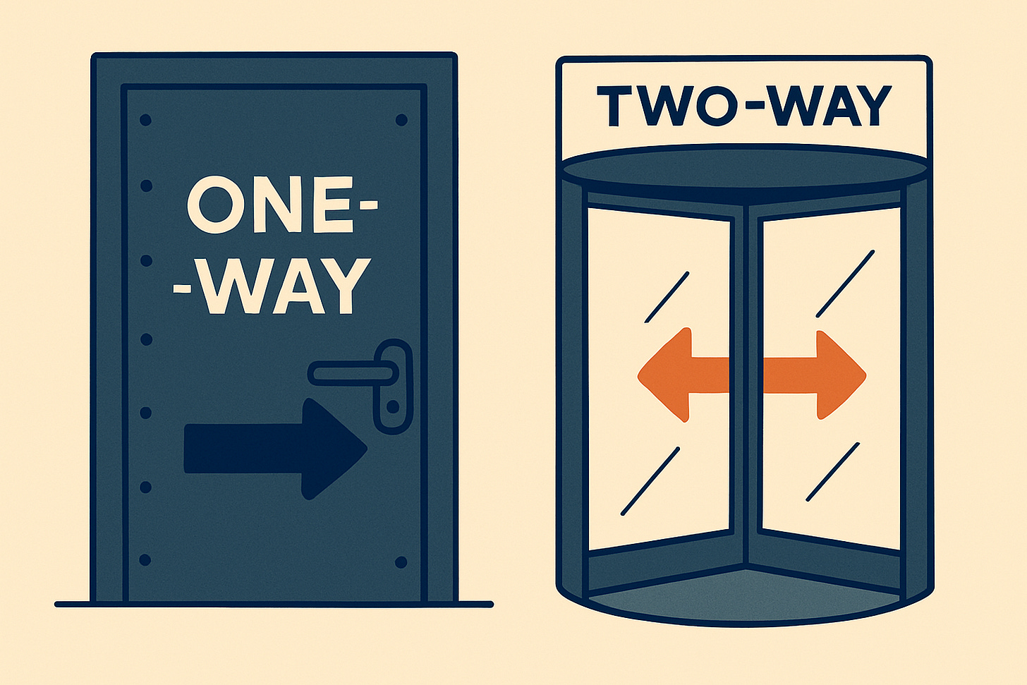 Two-way door decisions are low-risk and easily reversible. Examples might include trying a new process, deciding between prioritizing feature A or B, or rolling out a change to a small subset of users. For these decisions, speed is more important than perfection. You can (and should) move quickly, make the call, and adjust if it turns out to be the wrong choice.