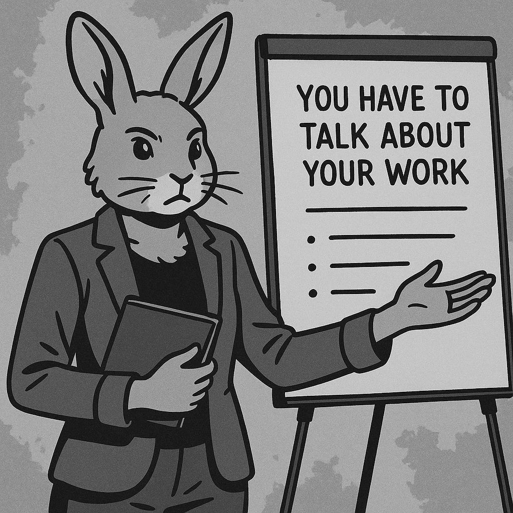 When I speak with mentors about this, they usually say to me, “It feels gross. I don’t want to talk about my work, I’d rather let it show for itself.” I get it. It can feel like self-promotion, and furthermore, you may have worked with people who over-promote or inflate their work.